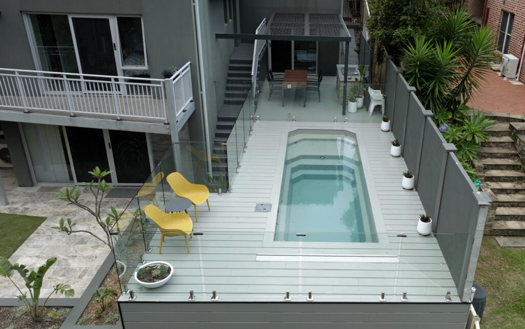 - Tailored Screen for the pergola and sleek glass pool fencing, both sourced from Oxworks